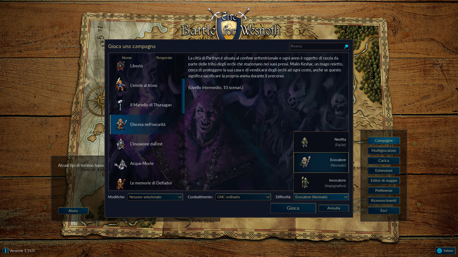 I contenuti per multigiocatori di Wesnoth hanno visto due significativi ingressi: “L’isola delle Brume” e “Conquista Mondiale”. L’isola delle Brume è uno scenario cooperativo di sopravvivenza sullo stile di “La tetra previsione”, con quest’ultima che ha visto la sua difficoltà ridotta mentre la prima ha preso il suo posto in termini di sfida. Conquista Mondiale, formalmente nota come estensione “Conquista Mondale II”, è una campagna multigiocatore con elementi GDR dove un massimo di tre giocatori cooperano per sopravvivere, far aumentare di livello le proprie unità e sconfiggere le armate a loro opposte.
